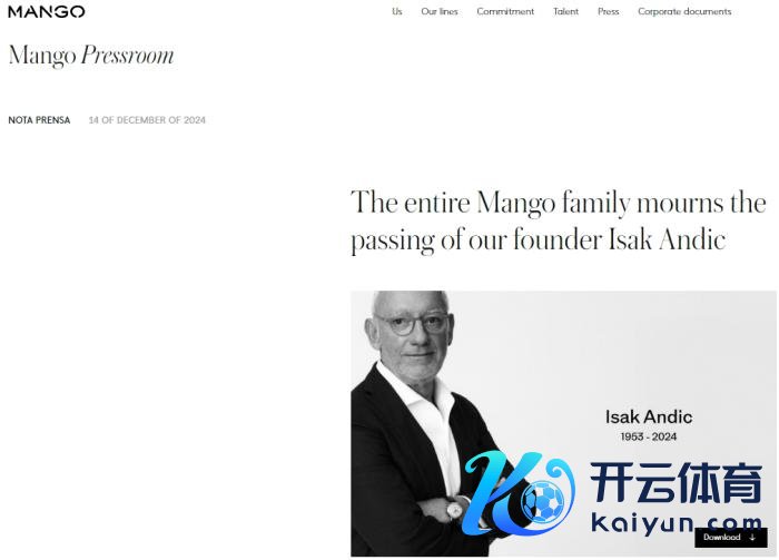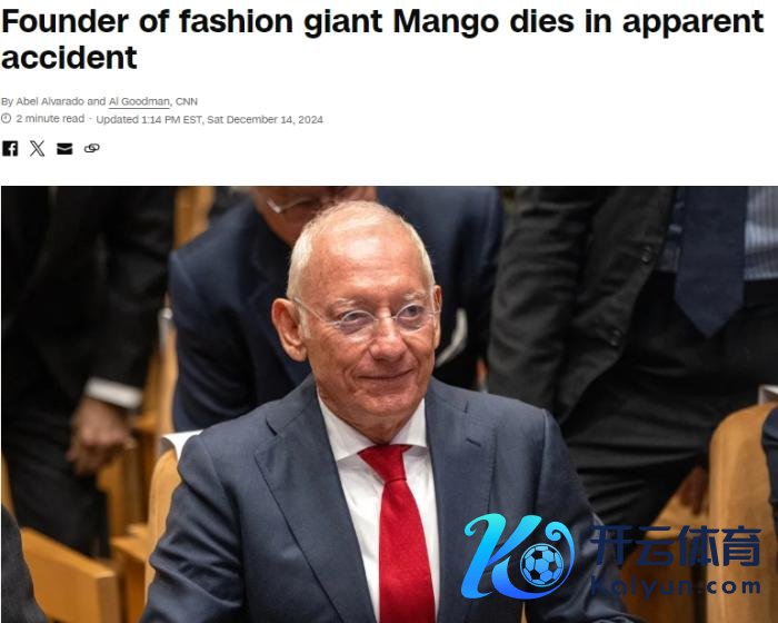 详细报谈,西班牙前卫品牌Mango公司在一份声明中晓喻九游体育娱乐网,该公司首创东谈主伊萨克·安迪克(Isak Andic)于当地时刻12月14日不测示寂。