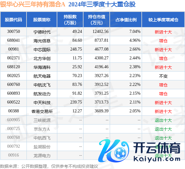 银华心兴三年捏有羼杂A为羼杂型-偏股基金,凭证最新一期基金季报败露,该基金钞票确立:股票占净值比94.43%,债券占净值比0.28%,现款占净值比6.03%。基金十大重仓股如下: