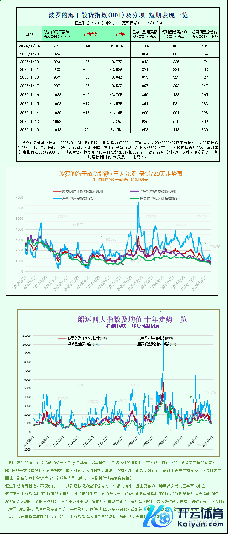 最新数据显现,2025/01/24 波罗的海干散货指数(BDI)报 778 点,创2023/02/22以来新低水平,较前值跌5.58%,且为市欢第9天地落。其中,巴拿马型运脚指数(BPI)报774 点,较前值跌3.73%,海岬型运脚指数(BCI)报983 点,跌9.07%,超灵便型船运价指数(BSI)报639 点,跌2.29%。波罗的海干散货指数+三大分项的最新720天走势图、十年走势图等详见汇通财经特制图表。