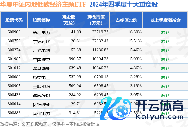 中原中证内地低碳经济主题ETF为指数型-股票基金,凭据最新一期基金季报露馅,该基金钞票成立:股票占净值比99.71%,无债券类钞票,现款占净值比0.41%。基金十大重仓股如下: