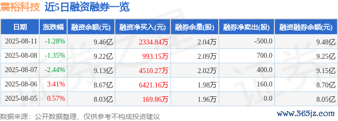 震裕科技融资融券信息走漏,融资方面,当日融资买入9125.2万元,融资偿还6790.36万元,融资净买入2334.84万元,勾通3日净买入累计7838.26万元。融券方面,融券卖出200.0股,融券偿还700.0股,融券余量2.04万股,融券余额215.06万元。融资融券余额9.48亿元。